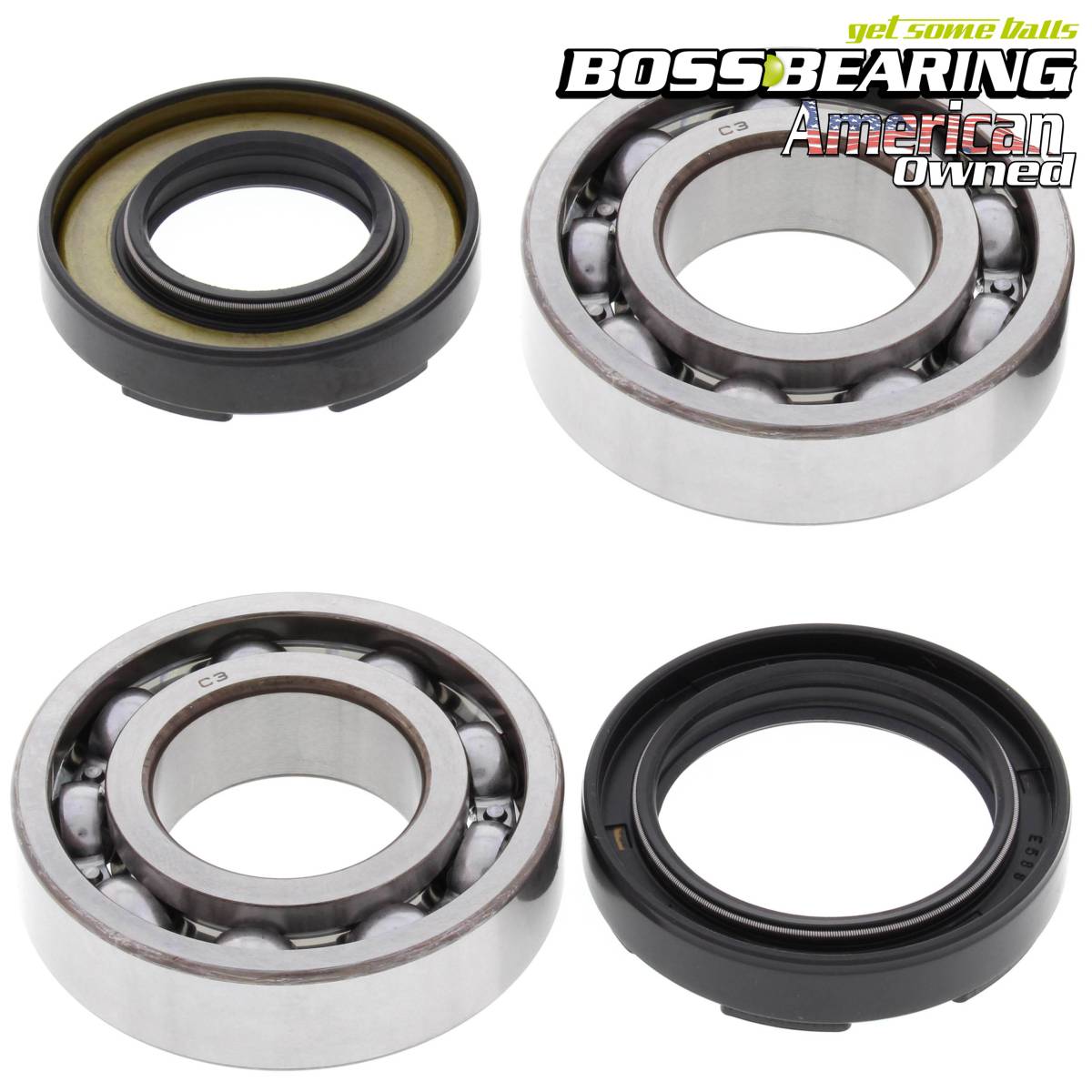 Main Crank Shaft Bearings and Seals Kit - 24-1026B - Boss Bearing. Includes: 2 Bearings; 2 Seals. Our crank seals feature a sealing lip which is designed to reduce crank pin wear. Note: Please review product image for accurate representation of product contents.