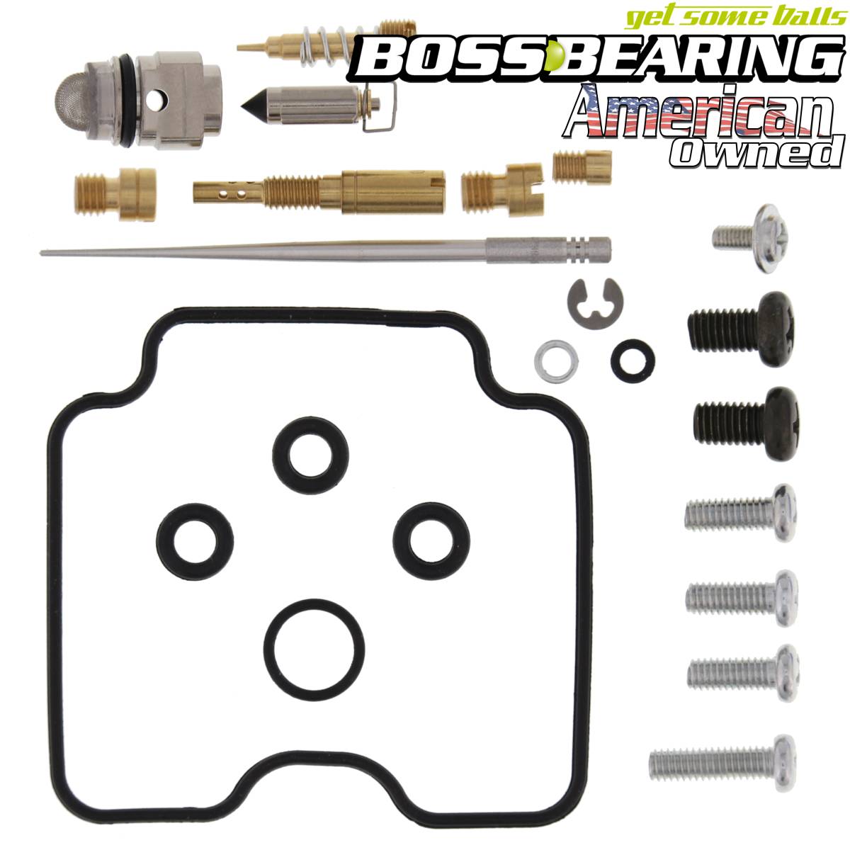 Boss Bearing 26-1407B Carburetor Rebuild Kit. All the necessary parts to repair one (1) STOCK OEM carburetor such as: jet needles, main and slow jets, float chamber gaskets, springs and float valves. Note: Please review product image for accurate representation of product contents.