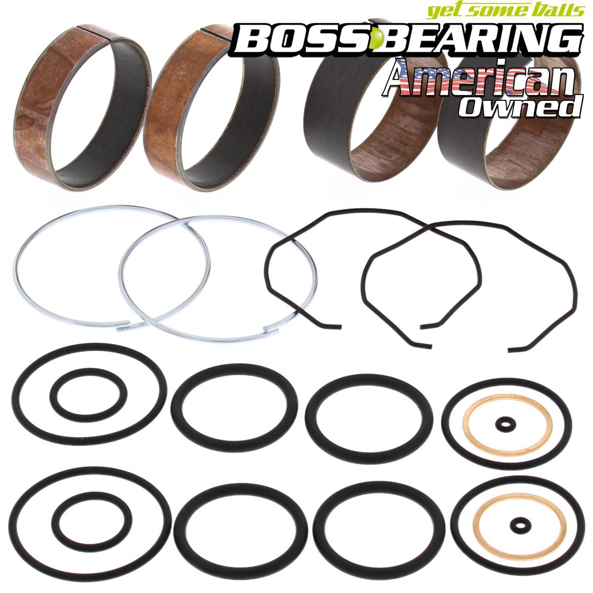 Kit Contains: 12 O-Rings; 4 Fork Bushings; 4 Snap Rings; 2 Washers. Dyno-tested to 500,000 strokes with less wear than OEM. Note: Please review product image for accurate representation of product contents.
