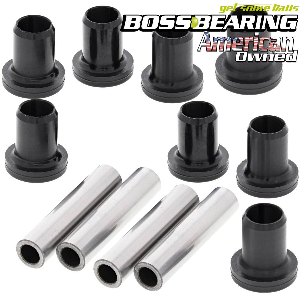 Front Upper A Arm Bearing Kit. Kit Contains: 16 Delrin Bushings and 8 Needle Bearing Shafts. 64-0095 Boss Bearing Note: Please review product image for accurate representation of product contents.