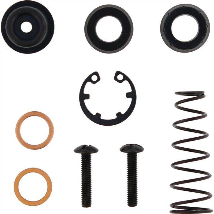Kit Contains: (1) Boot, (2) Master Cylinder Cup Seals, (2) Screw, (1) Snap Ring, (1) Spring, and (2) Washers